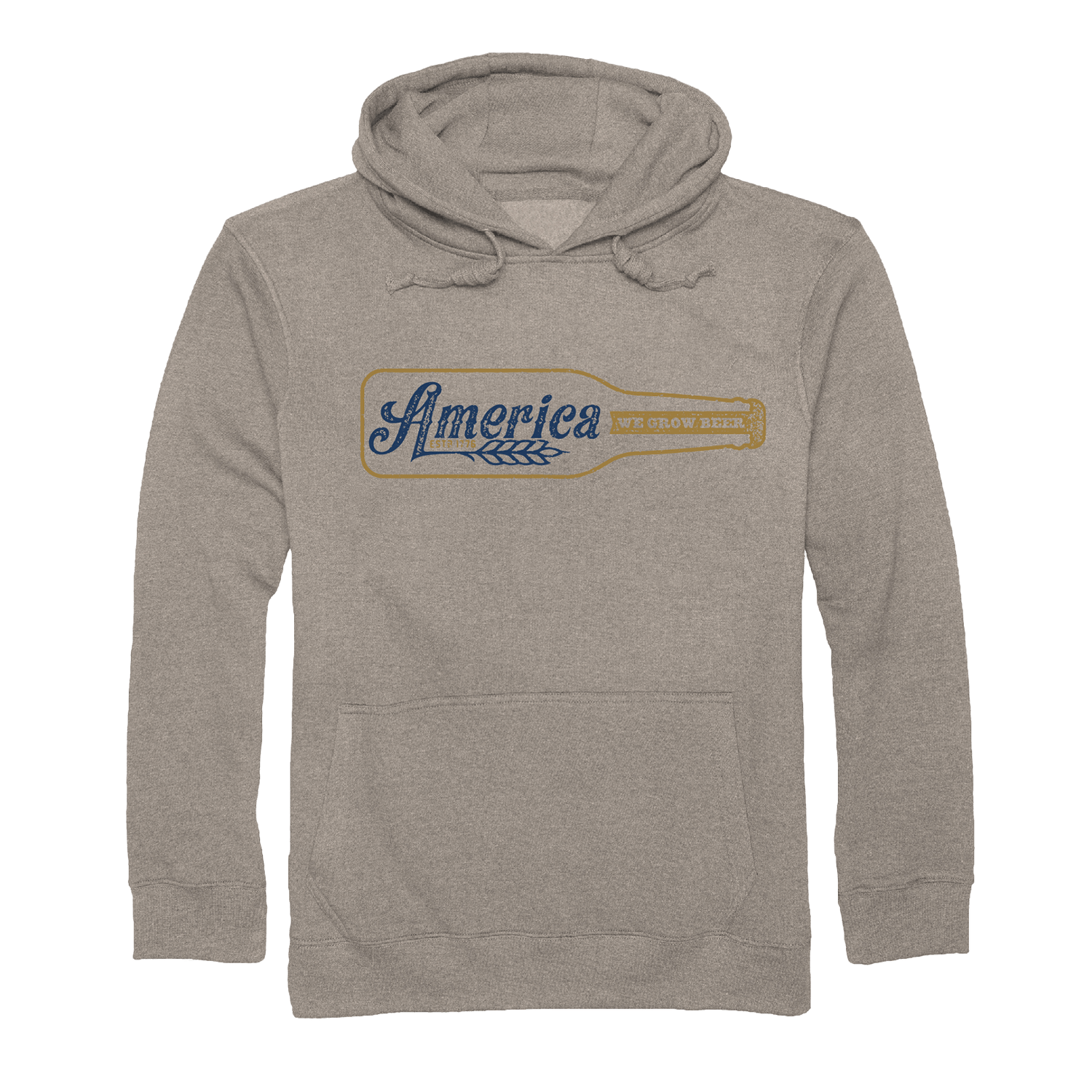 Design: This hoodie boasts a distinctive design that captures the essence of American brewing culture. Front and center, you'll find a unique sideways silhouette of a beer bottle. It's a playful nod to the beloved beverage that brings people together across the nation. Inside the bottle, the bold lettering spells out "America We Grow Beer," conveying the idea that beer is a part of the American fabric, cultivated with pride and enjoyed with enthusiasm.